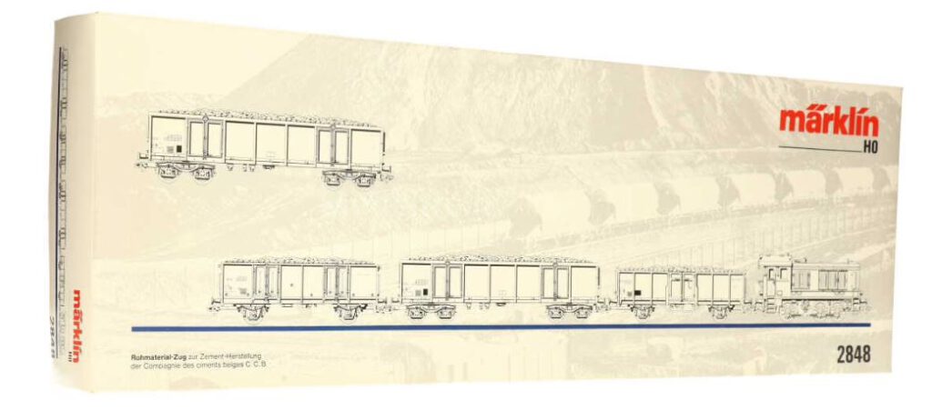 Vanuit België komt deze leuke set op de baan. Het is een mooie set met een diesellocomotief type V36. Daar hebben we er al meer van in de collectie maar deze uitvoering is toch wel een beetje bijzonder. De bijgeleverde lading voor de wagons komt daadwerkelijk uit de aanvoer voor de betonfabriek!