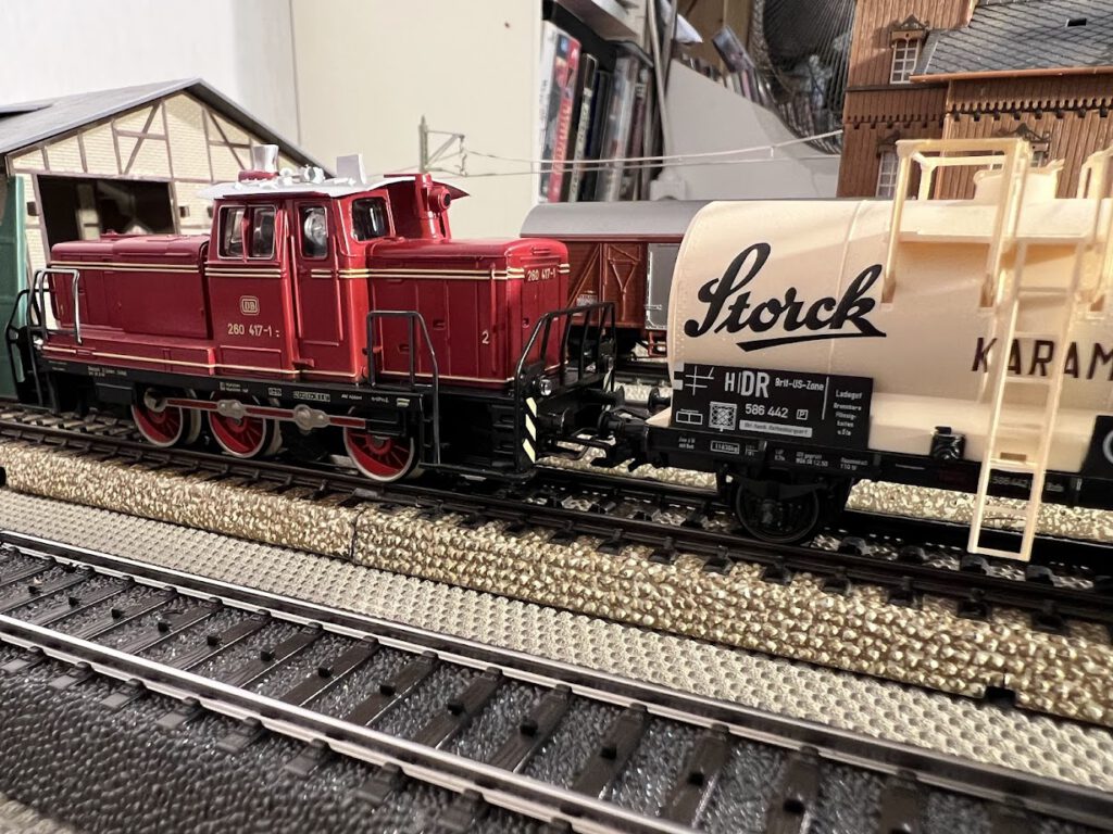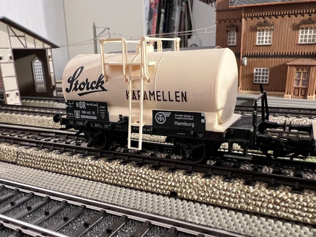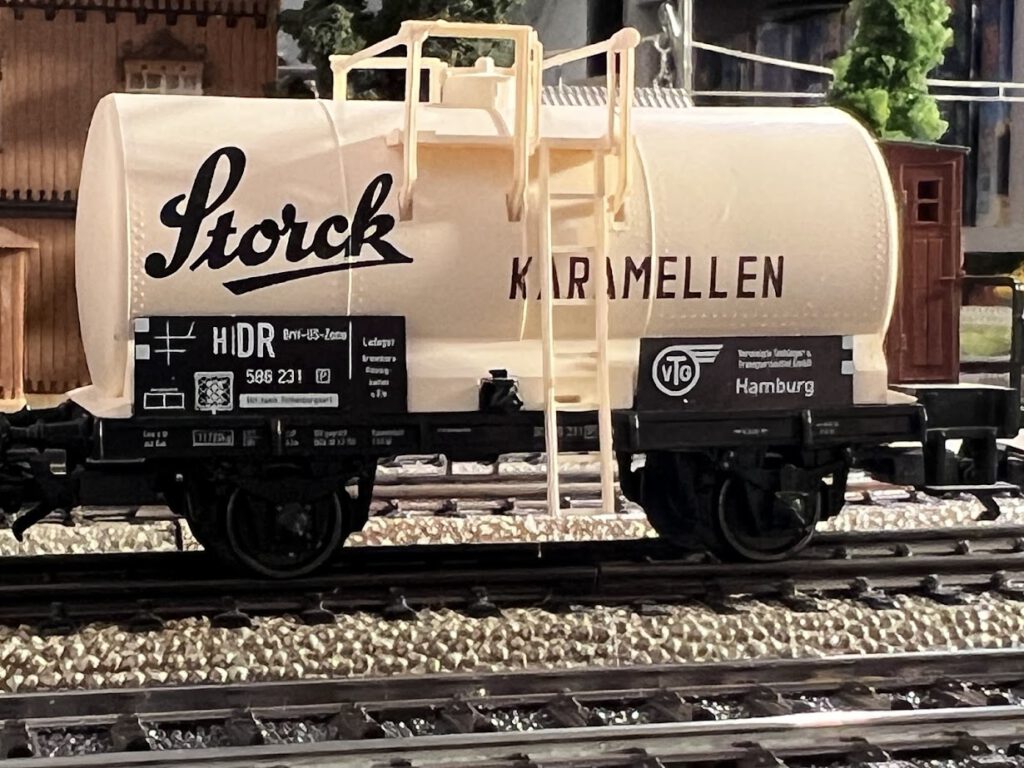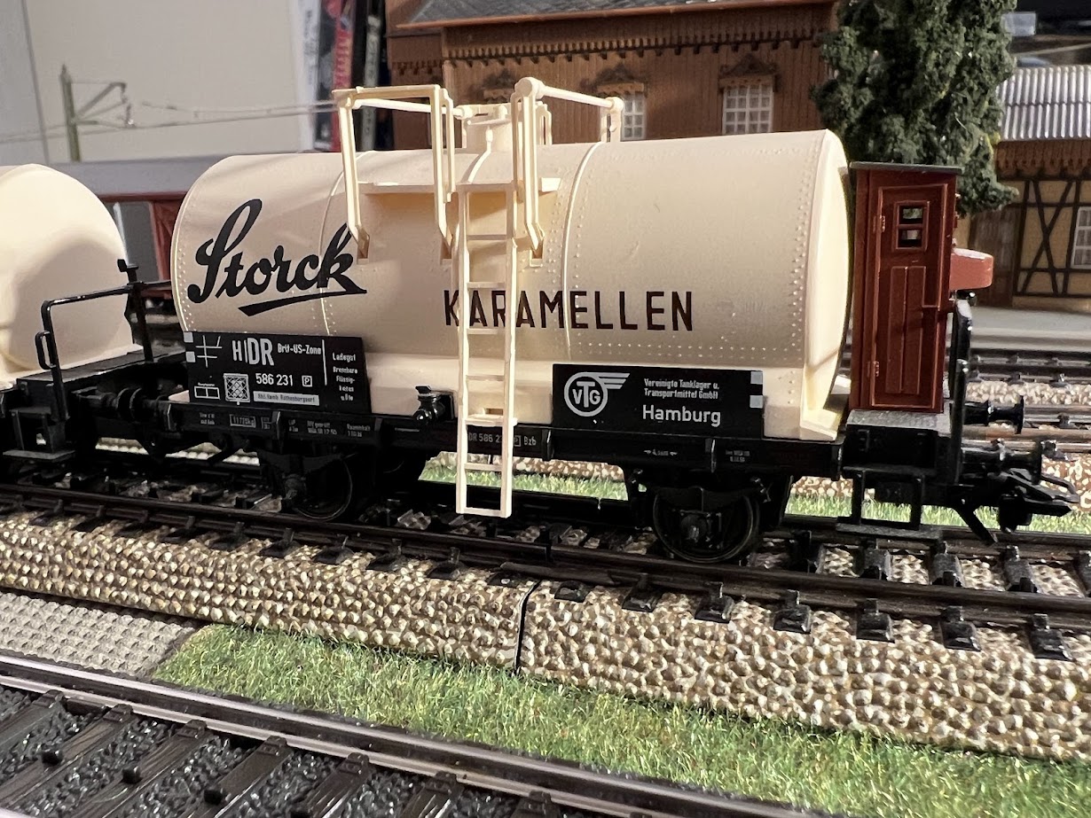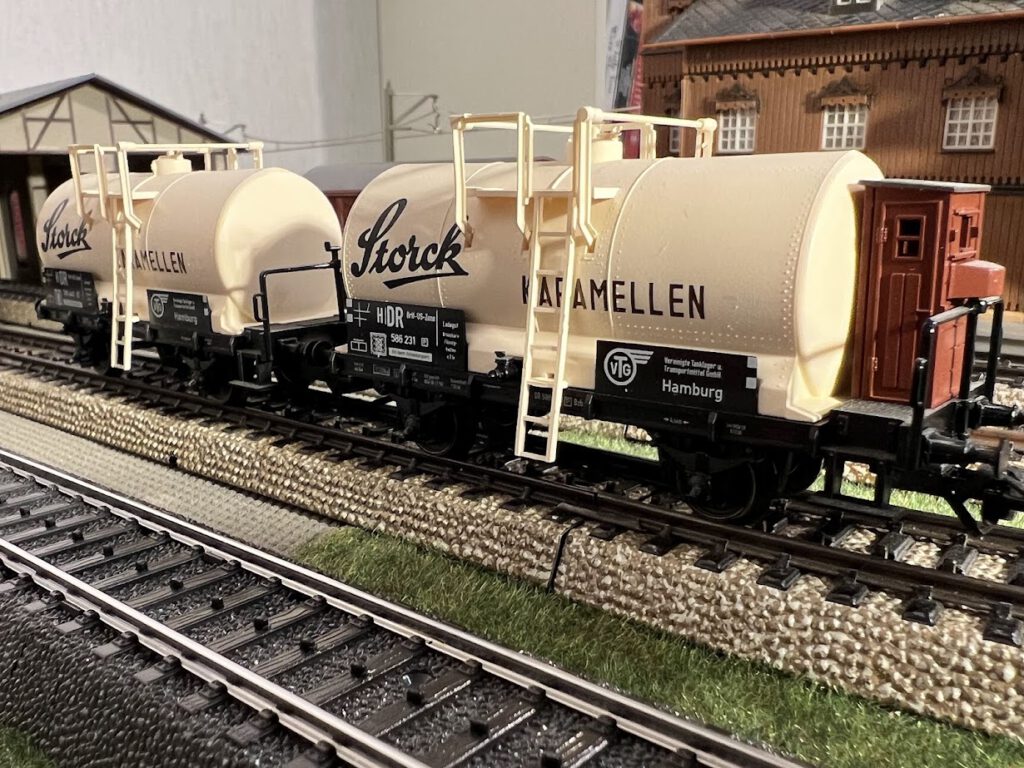 Op ons rangeerterrein staan vandaag een paar prachtige tankwagons van de Firma Storck. In Nederland bekend van snoeplekkernijen zoals Merci, Werthers Echte, Toffiefee en Knoppers
