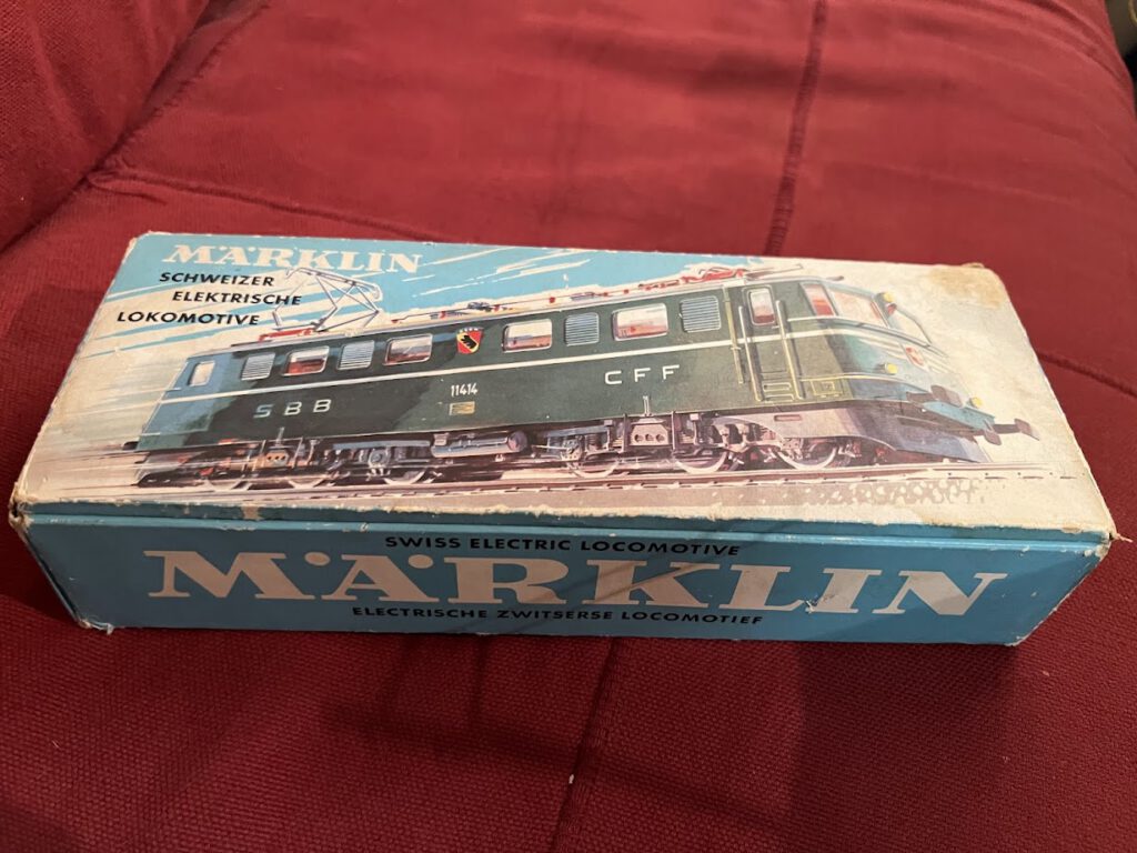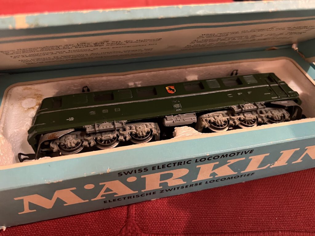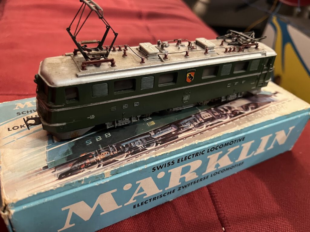 ik mocht een andere uitzoeken en koos een groene elektrische locomotief van de SBB-CFF, de Zwitserse Spoorwegen. Märklin nummer 3050(!)