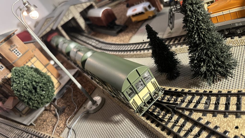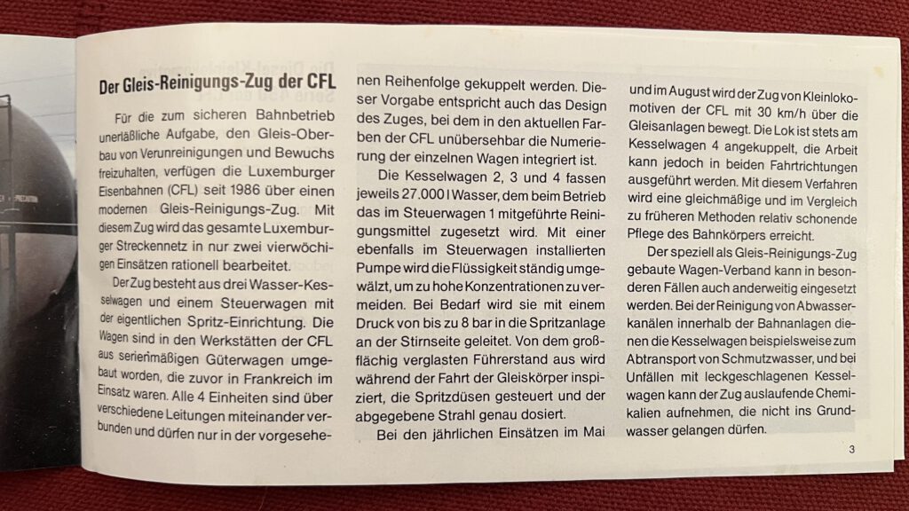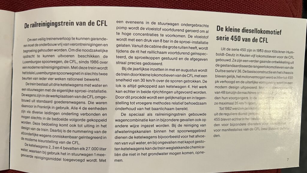 Deze mooie set rijdt vandaag een rondje over onze testbaan. Het origineel is/was te vinden in Luxemburg. Daar werd deze trein ingezet om de spoorlijnen te reinigen.
